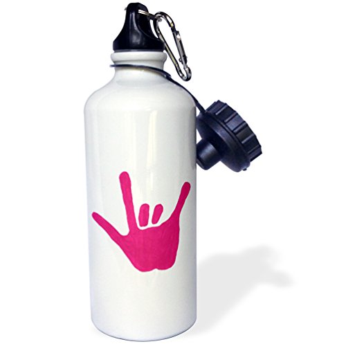 3dRose wb_14308_1 Love Sign Language Pink Sports Water Bottle, 21 oz, White
