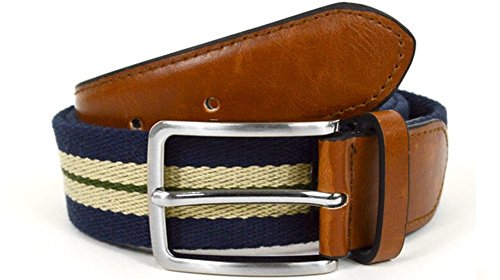 -. Title : AimTrend Men's Casual Poly Cotton Braided and PU Leather Silver Tine Buckle Belt