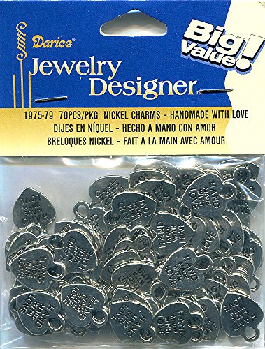 - Silver tone metal "Hand made with Love" Charms 70 pieces per package