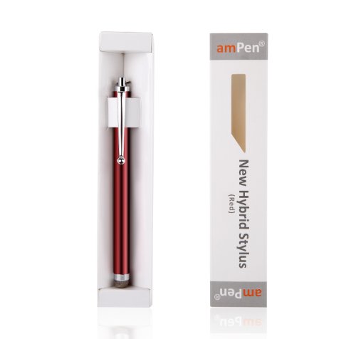 Stylus, amPen Hybrid Stylus (Red) for iPad Air, iPad Pro, iPad 2/3/4, iPad Mini 2/4, iPhone 6 Plus/6, Nexus 5x/6P, Galaxy Tab S2/E/A/8.0, Galaxy S6 Edge/S6/S5 (Interchangeable Hybrid Tip Feature) B00IK05RV4