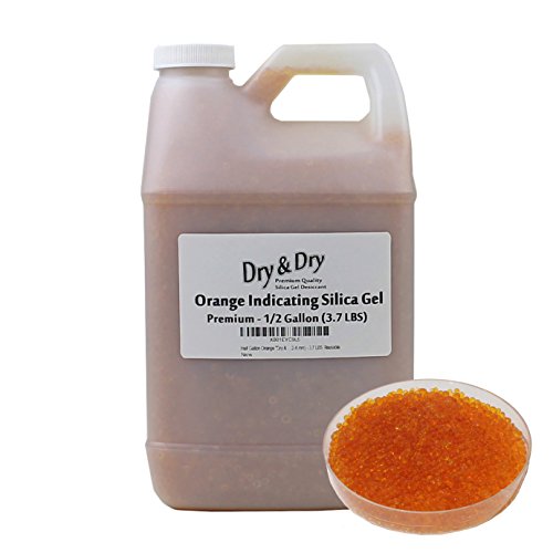 Half Gallon Orange "Dry & Dry" Premium Desiccant Indicating Silica Gel Beads(Industry Standard 2-4 mm) - 3.7 LBS Reusable