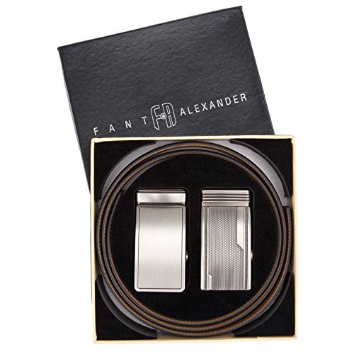 -. Binding : Apparel -. Brand : Fant Alexander -. Department : mens -. Feature : Quality crafted with 100% full grain leather strap matching with quality zinc alloy buckle, Super comfortable & durable to provide you with a long lasting accessory for long term use / Set of 2 Auto Lock Buckles (Sliding Buckle) with Durable rubber ratchet. No holes, you can precisely adjust your belt to the perfect fit / Easy to remove buckle & quickly trim down the strap to your exact waist size to fit perfectly for ultra-comfort / Stylish finishing touch to your outfit, perfect with smart or casual attire with leather strap 3.5cm wide. Buckle size 8.5cm length & 4.1cm wide. / We offer our customers a 100% satisfaction guarantee! We are so confident that you will be pleased with the effectiveness of our product that your purchase is backed by a 90 day money back guarantee -. ProductGroup : Apparel -. ProductTypeName : ACCESSORY -. Title : Men's Full Grain Cowhide Leather Belts set, 1 belt+2X Solid Automatic Ratchet Buckles set
