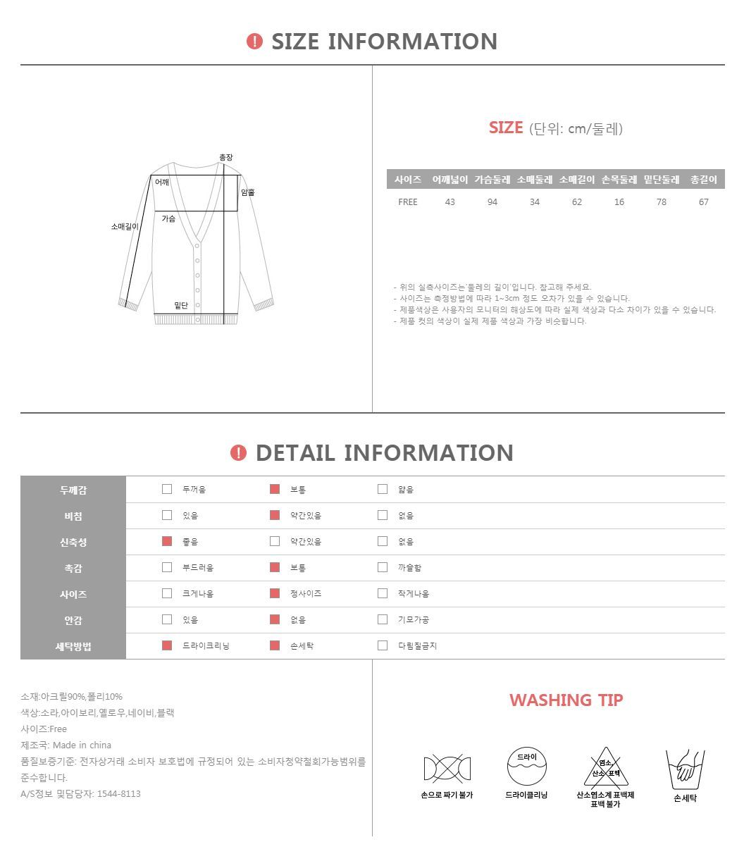 데일리라이크 브이넥 심플 니트 가디건 #20790MD COMMENT 전체적으로 심플하면서도 베이직한 디자인이 돋보이는 니트 가디건을 소개할께요! 얇고 가벼워 간절기에 착용하기 좋으며 가방에 쏙 넣어다니며 외부 기온에 따라 가볍게 걸치기 좋은 아이템이에요!DETAIL TIP 여밈을 했을때 브이넥으로 연출되는 네크라인과 원단과 동일한 컬러의 단추 디테일로 포인트를 준 가디건이에요! 전체적으로 깔끔하고 심플한 디자인이 돋보여 어떤 스타일에든 가볍게 연출하기 좋은 아이템이에요! 양쪽 포켓 디테일로 실용성을 더해주었고 얇고 가벼운 소재감과 뛰어난 신축성이 돋보이네요 은은한 비침이 느껴질 정도로 얇은 니트 소재라 간절기에 가볍게 걸치기 좋아요!COLOR,SIZE TIP 컬러는 소라,아이보리,옐로우,네이비,블랙 컬러로 구성되어 있으며, 모델의 착용 컬러는 네이비 입니다. 사이즈는FREE(44-66)사이즈로 진행되오니 고객님의 체형에 맞게 선택하셔서 예쁘게 착용하시길 바랍니다.