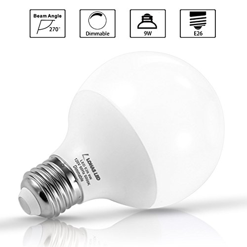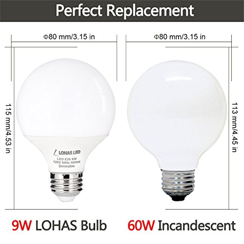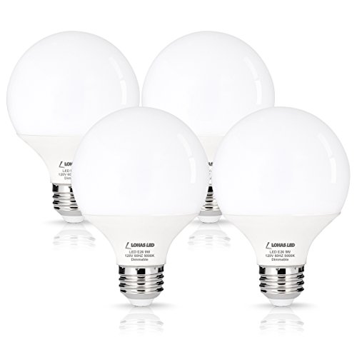 LOHAS G25 LED Globe Bulb, Dimmable LED 60Watt Globe Light Bulbs Equivalent, 9 Watt Vanity Bulb Daylight White (5000K), E26 Medium Screw Base LED Lamp Bulb, 4 Pack