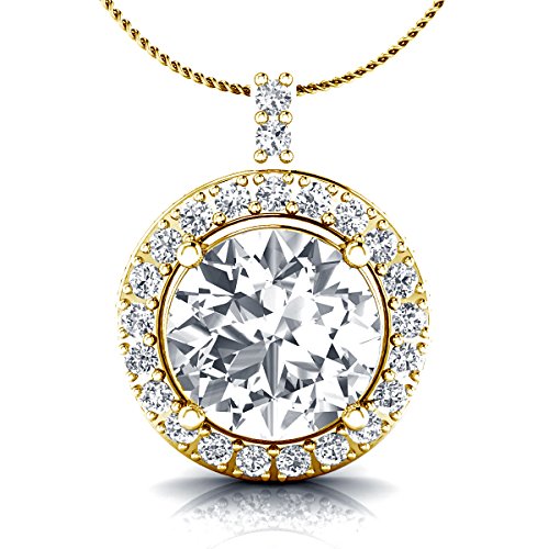 -. Feature : Sterling silver necklace featuring a round cubic zirconia pendant encircled by a pave-set cubic zirconia halo / 14Kt White gold Rhodium Plating gives a bright, shiny, long-lasting silver-colored finish / April Birthstone Gemstone Colour / Perfect gift idea for Christmas, party, wedding, engagement, anniversaries, graduations, birthdays, Mother's Day, Valentine's Day and so on