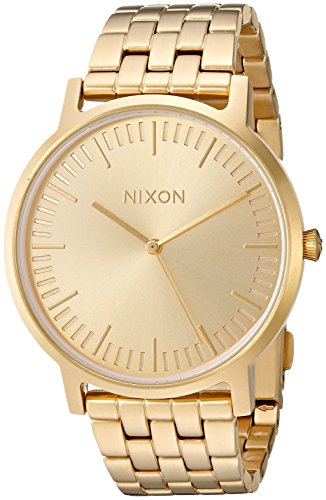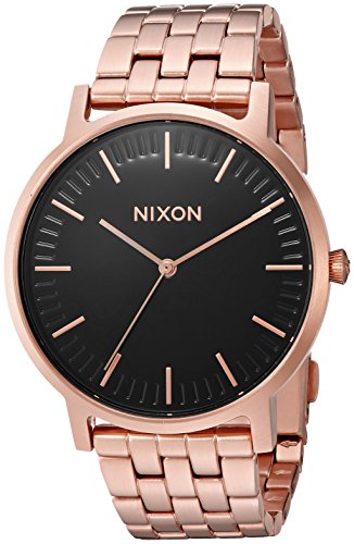 Forward in thinking but rooted in traditional style, The Nixon® Porter watch features a bold printed dial that makes a statement without all of the excess! Miyota Japanese quartz 3 hand movement and crown placement at 3 o'clock. The dial features bold printed hour indices and a stamped seconds track. Case:• 50 meter/5 ATM custom stainless steel case• Hardened mineral crystal• Double gasket crown• Snapped down caseback• Spring pin lugs Tapered custom solid stainless steel free-swing five link bracelet with a solid stainless steel double pusher clasp. Imported. Measurements: Case Height: 40 mm Case Width: 40 mm Case Depth: 8 mm Band Width: 5⁄7 in Band Circumference/Length: 6 1⁄2 in Weight: 3.4 oz This product may have a manufacturer's warranty. Please visit the manufacturer's website or contact us at warranty@support.zappos.com for full manufacturer warranty details.Feature