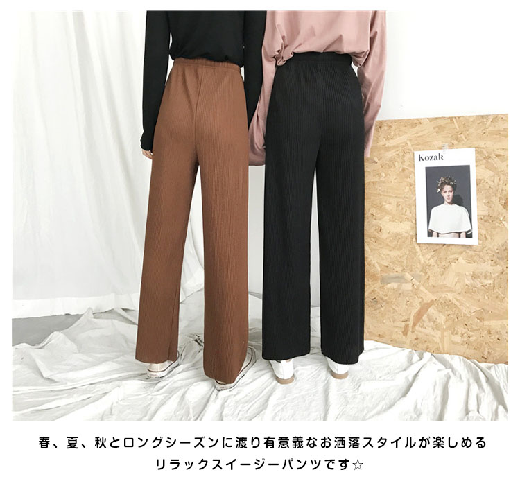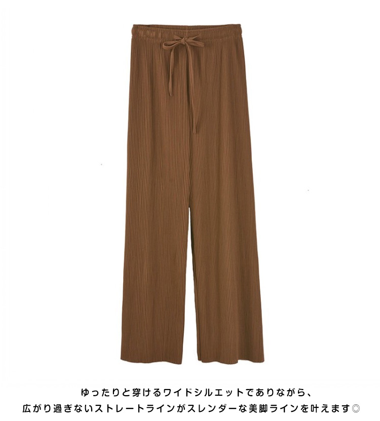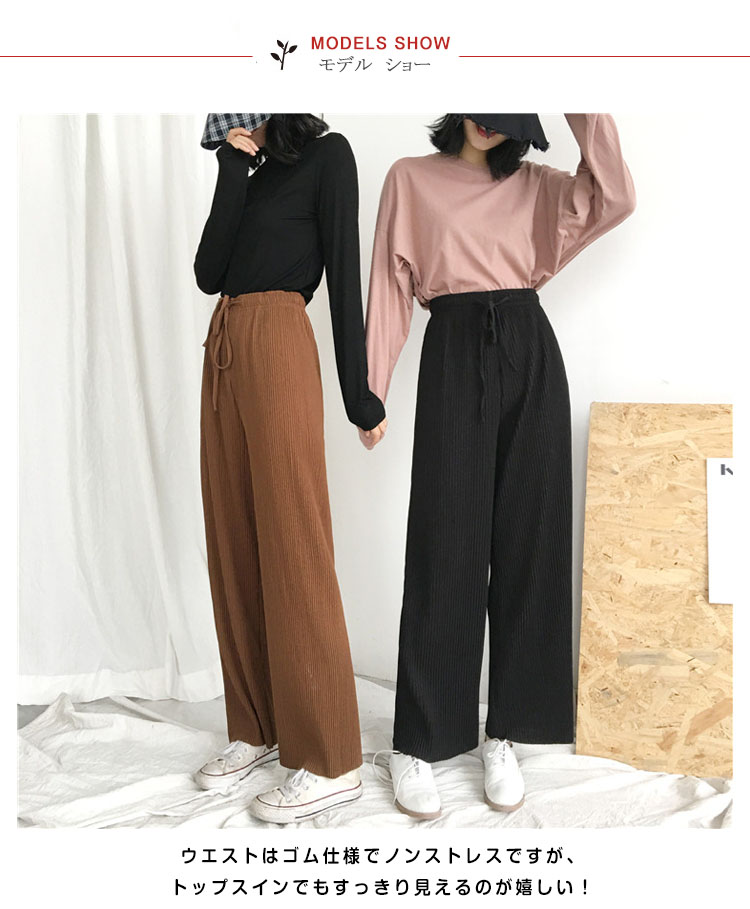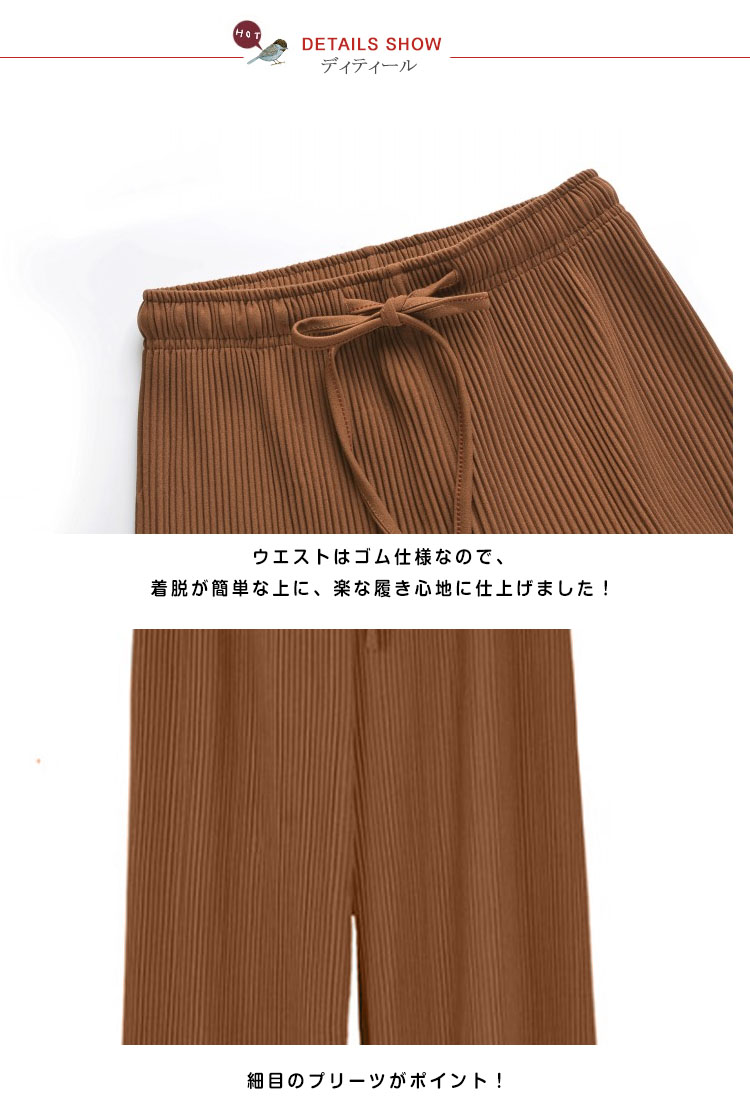 | 今季トレンド感のあるプリーツデザインのワイドパンツ。細目のプリーツがポイント!ウエストはゴム仕様でノンストレスですが、トップスインでもすっきり見えるのが嬉しい!春、夏、秋とロングシーズンに渡り有意義なお洒落スタイルが楽しめるリラックスイージーパンツです☆ | |