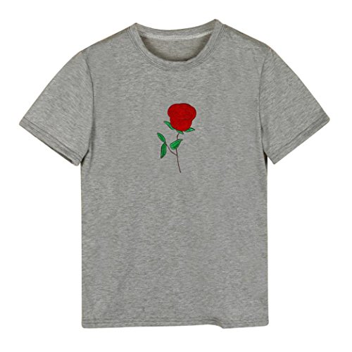 -. Title : ecursonレディース夏マルチカラーローズ刺繍プラスサイズブラウス半袖Tシャツ