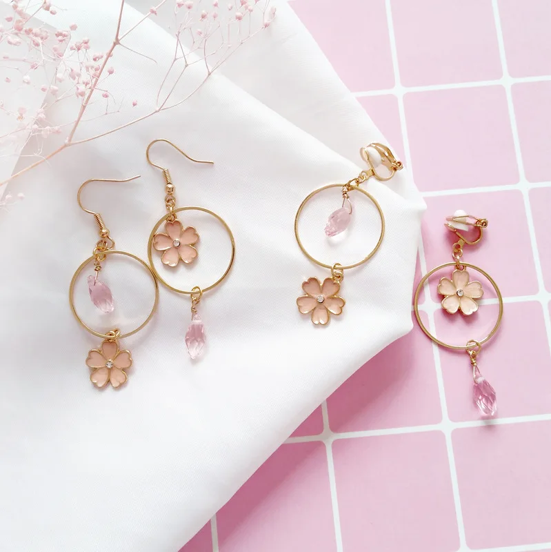 Pedant shape:Flower Long Hoop Earring Without Piercing