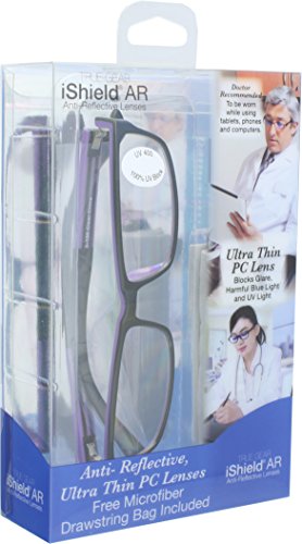 True Gear iShield Anti Reflective Reading Glasses - Double Injection Rectangular Frame (+2.00) - Black with Purple