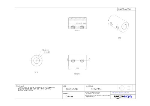 Climax Part RC-031-A Aluminum Rigid Coupling, 5/16 inch bore, 5/8 inch OD, 1 inch length, 10-32 x 1/8 Set Screw