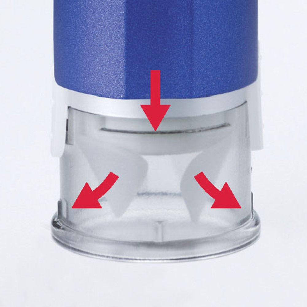 Adopted a wing shutter mechanism that automatically opens the shutter when stamping.