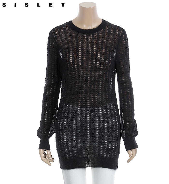 시스루 소재로 여성스러운 니트 티셔츠입니다