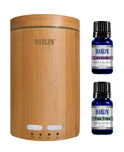 Harlyn Ultrasonic Real Bamboo Aromatherapy Diffuser - Includes 2 FREE Essential Oils (Lavender & Tea Tree) - 7 LED Lights - Waterless Auto-shutoff & Timer - For...