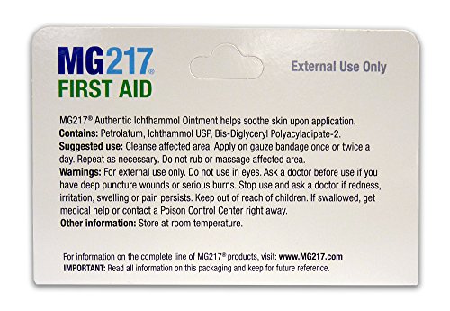 ReleaseDate : 2017-02-26 Studio : Wisconsin Pharmacal - HPC Publisher : Wisconsin Pharmacal - HPC Binding : Health and Beauty Product Description MG217 Ichthammol Ointment helps soothe irritated skin on contact. This ointment contains 10% authentic ichthammol. This product contains no parabens, no artificial colors, no synthetic fragrance and no animal testing. Size: 1 ounce. 0