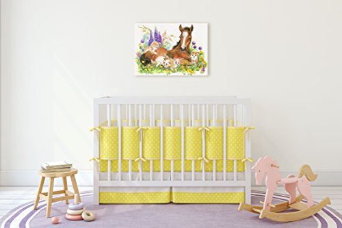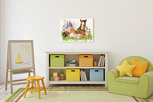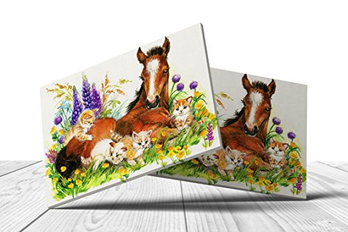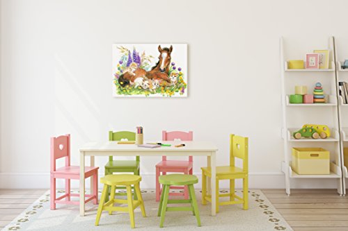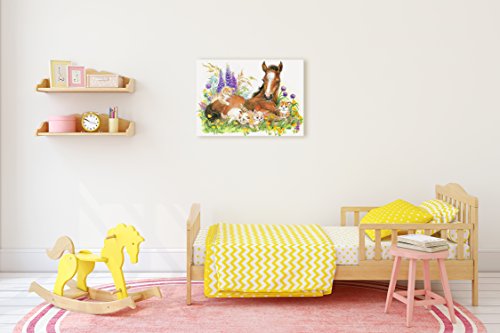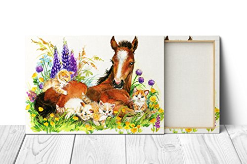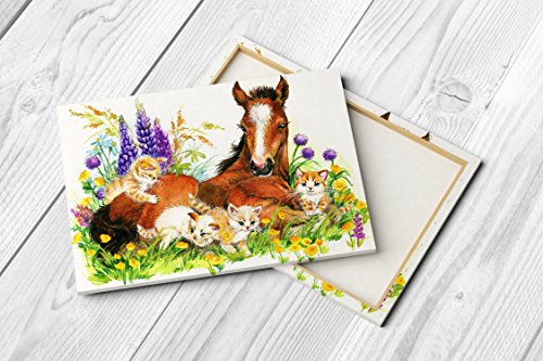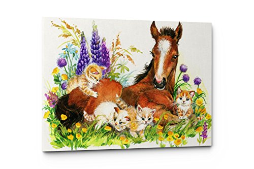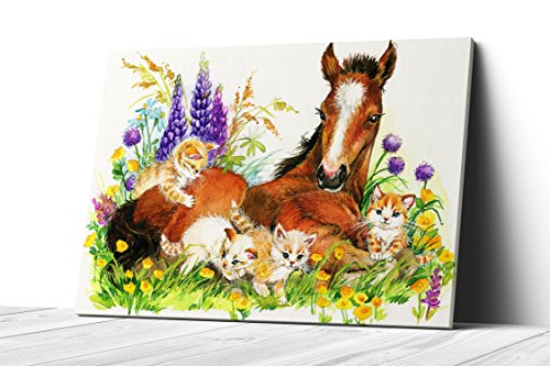 Nursery Children Room Canvas Wall Art Prints (17"W x 11"H, Horse with Kittens)