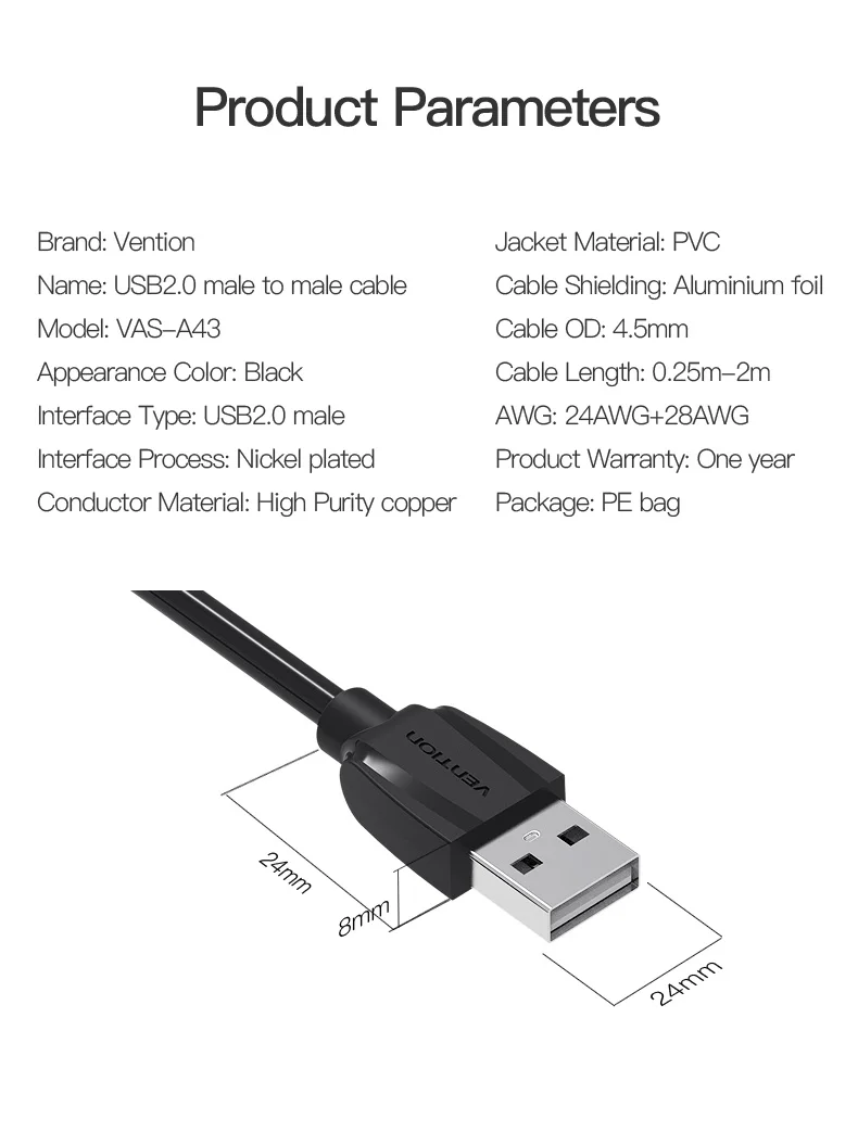 Product Name:Vention USB 2.0 Male to Male Data Cable