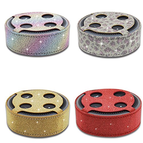 FEATURES SPECIFICATION: ?Improves protective ?Fits Amazon Echo Dot 2 perfectly ?Great gift idea for Echo Dot Alexa user ?Luxury stylish elegant looking ?Shiny sparkle bling Design ?Precision cut-out and easy access ?Easy install and take out ?Does not impact sound quality ?Lightweight for easy carrying ?Attractive home decor ?Satisfaction guaranteed ?Material: PU Leather ?Weight: 27g/0.95oz ?Dimensions: 3.5 x 3.5 x 1.2 inches ?Color:Blue/Red/Gold/Green/Silver/Rainbow/Leopard Print