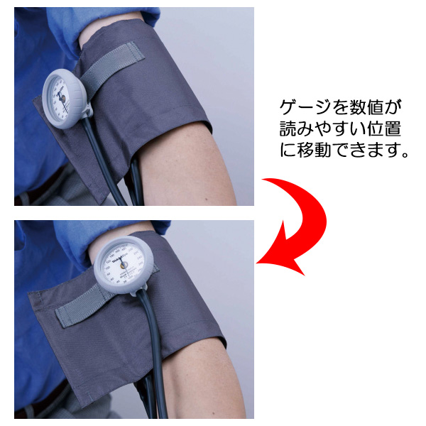 ●カフには、腕の太さに合わせてゲージが移動できるループ付。