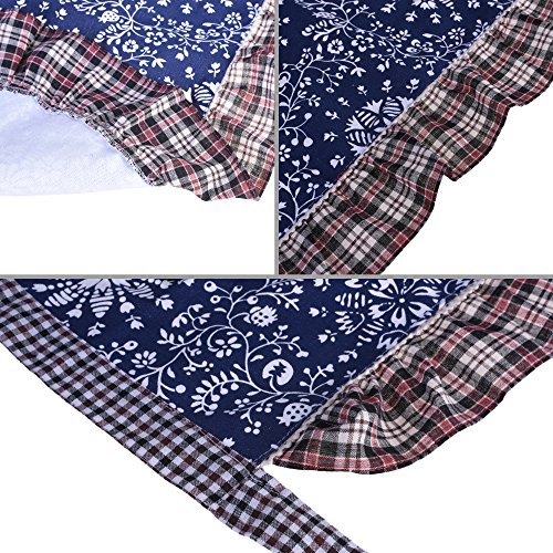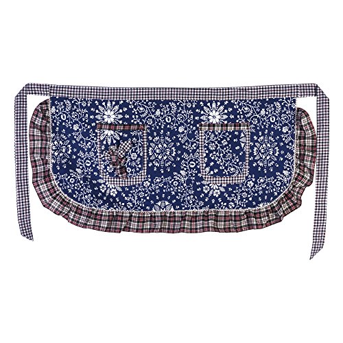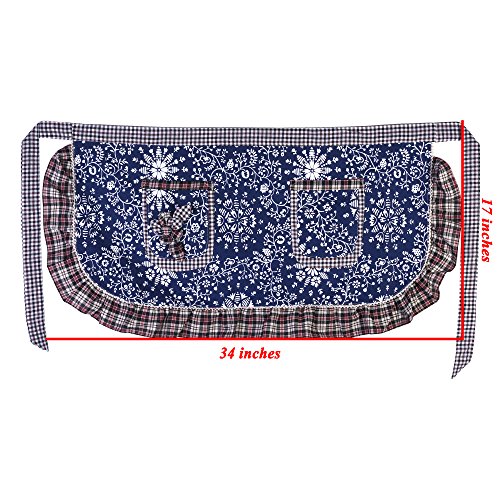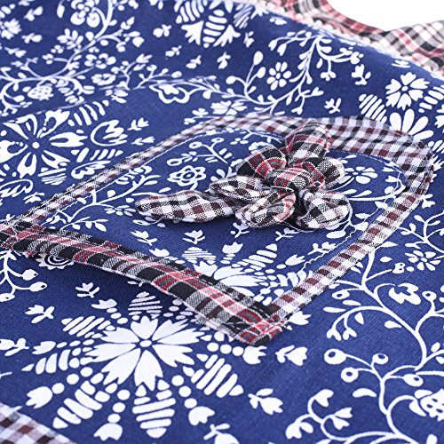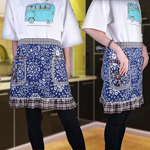 BCP Cotton Girl Flower Pattern Woman Waist Apron Half Bistro Aprons with Pocket for Restaurant Waitress Waiter (Blue)