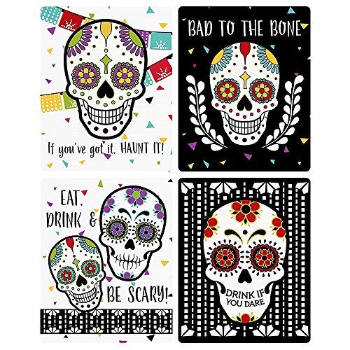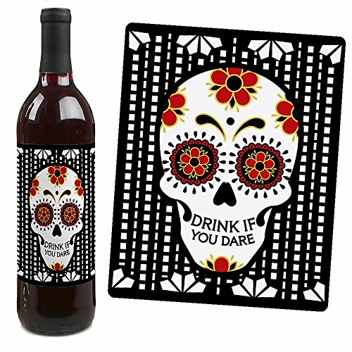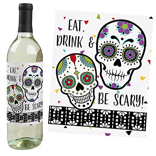 Day Of The Dead - Halloween Sugar Skull Wine Bottle Label Stickers - Set of 4