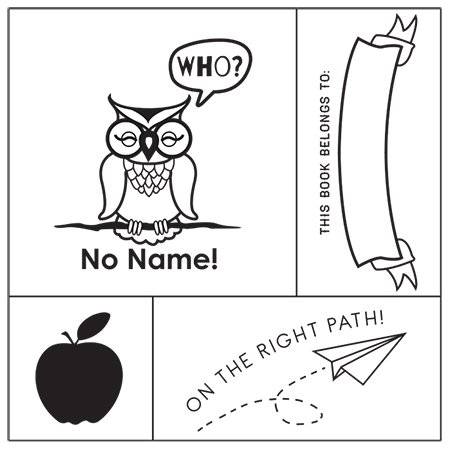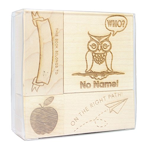 -. Feature : Grade papers, provide instruction, and praise excellent performance with this teacher engraved wood rubber stamp set! / 4-piece stamp set includes: "Who? No Name!" owl (2" x 2"), "This Book Belongs To:" banner (1" x 2"), apple (1" x 1"), and "On the Right Path!" paper airplane (1" x 2") / Each stamp features a maple mount with a laser-engraved index / Stamp set comes in a 3" x 3" acetate plastic box / Requires a separate ink pad