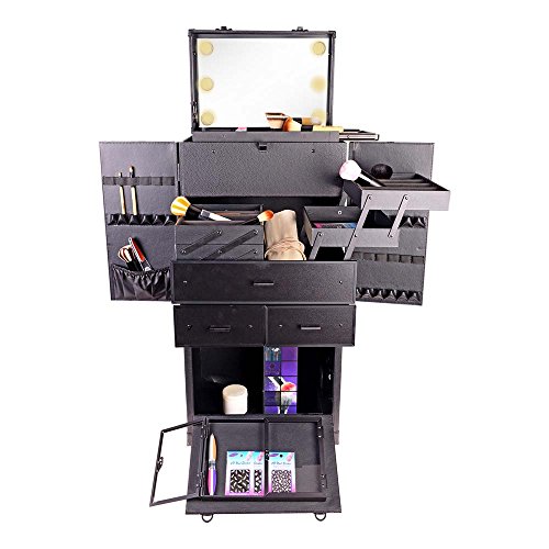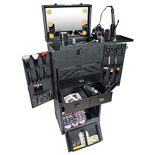 SHANY REBEL Pro Series – Makeup Artists Multifunction lighted Cosmetics Rolling Case with Fan - ONYX
