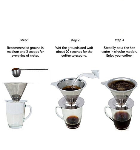 - Made of quality 18/10 stainless steel reinforced wire mesh, save you money from those costly paper filters and eco-friendly.