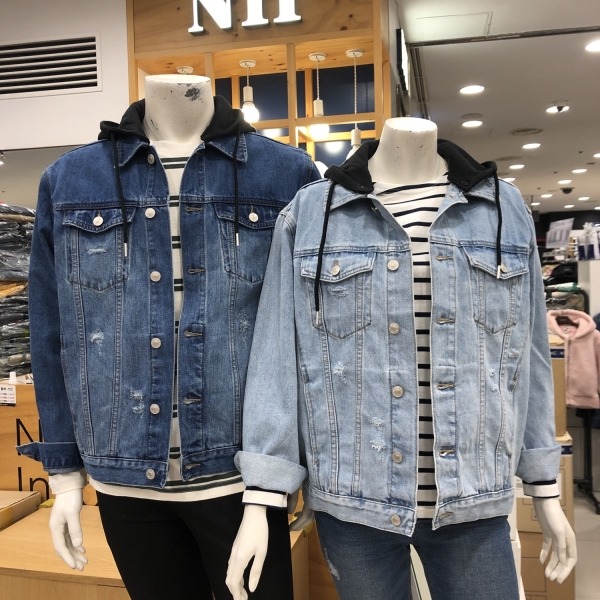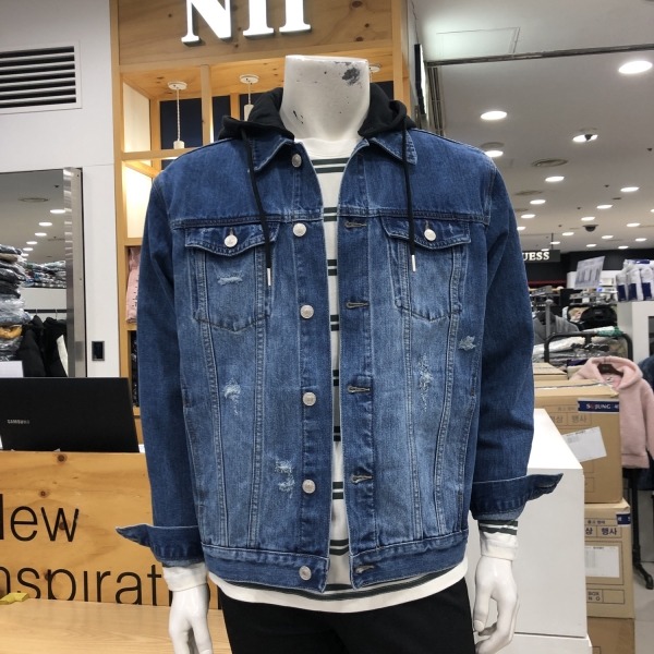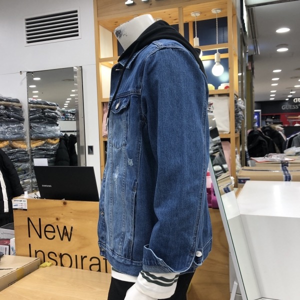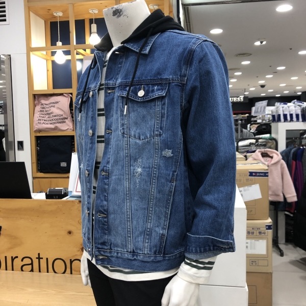 유니)후드탈착 오버핏 데님재킷