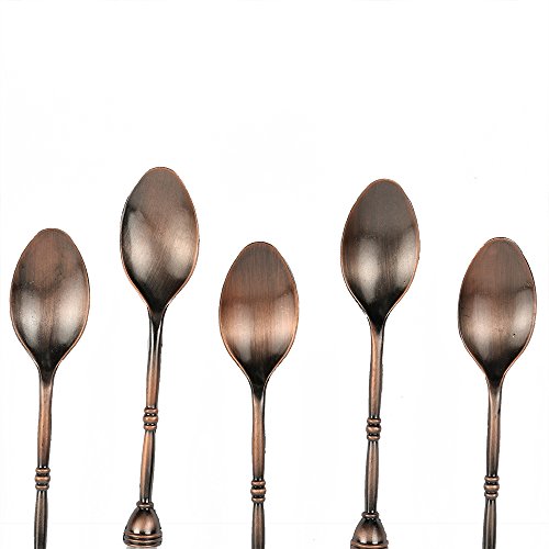 CHICHIC Retro Coffee Spoon Tea Spoon, Diamond Copper, Set of 5