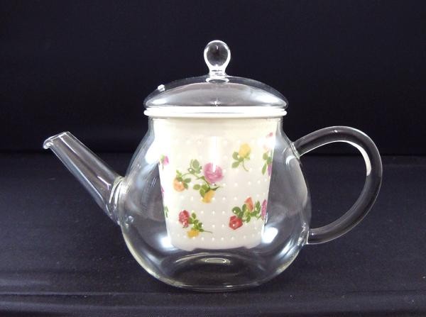 ガラスのティーポットに有田焼の茶こしがおしゃれ☆日本茶・紅茶・中国茶・ハーブティーなどいろんなお茶にご使用下さい♪ |