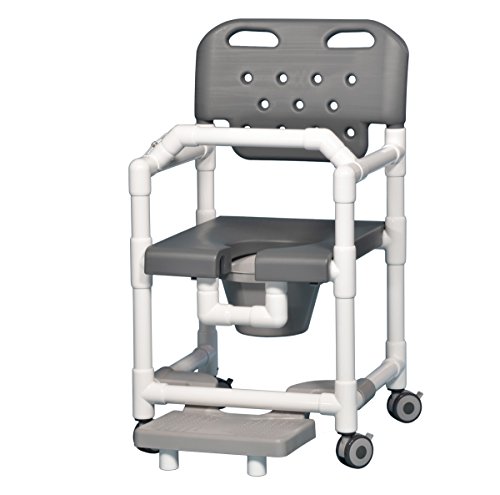 Studio : Innovative Products Unlimited Publisher : Innovative Products Unlimited Product Description ?Virtually indestructible blow molded seat and backrest available in Gray, Red, Blue ?Open-front seat and U-shaped opening in frame allow easy access for bathing care ?Special seat design offers unmatched comfort ?Snap-on seat lifts off frame for easy cleaning ?Never rust, all locking, twin-wheel casters ?Backrest push handles for easy mobility ?Slide-out pail included ?This model features a slide-out footrest and lap bar 0