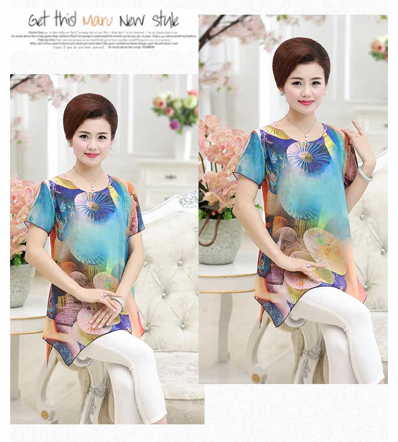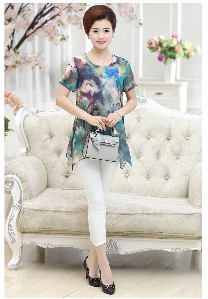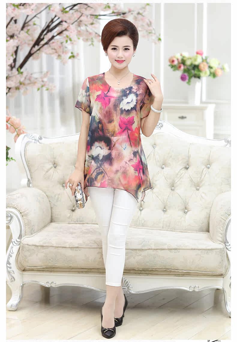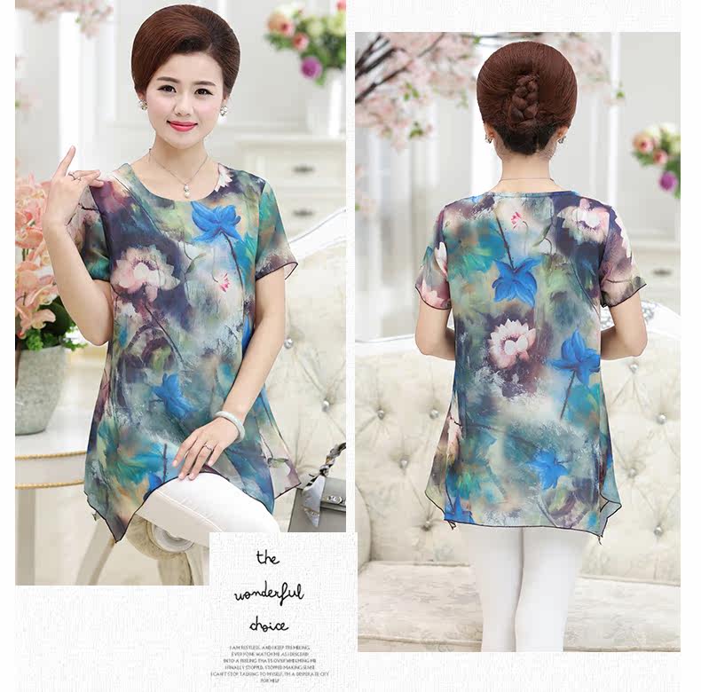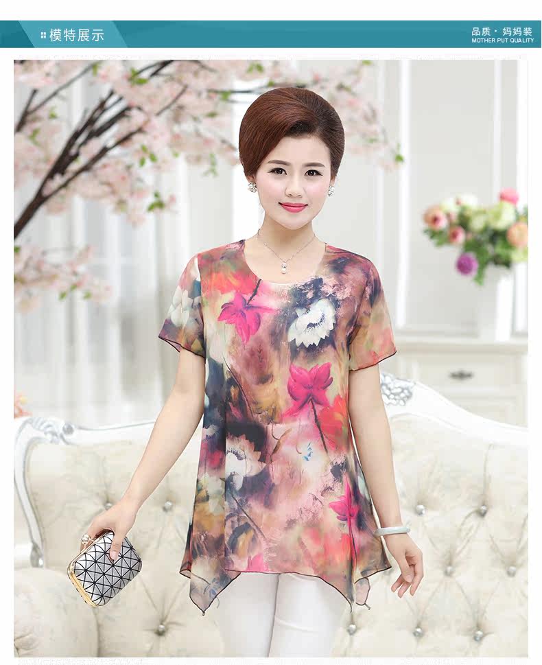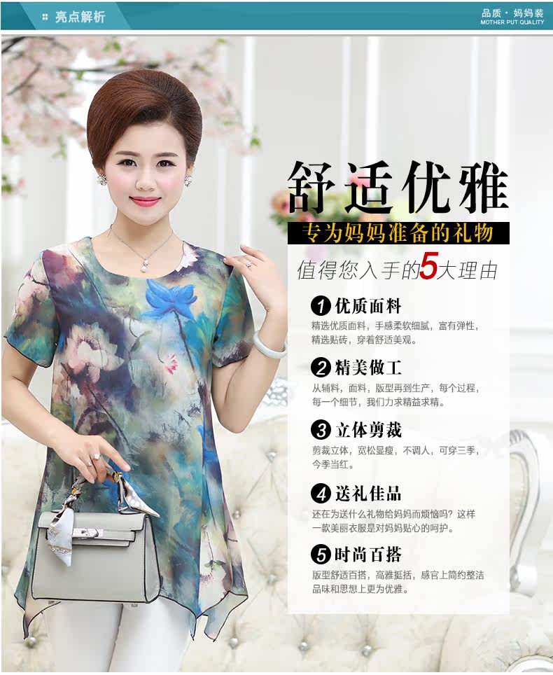 中老年女装夏装短袖T恤中年女装夏季上衣40-50岁妈妈装夏季T恤衫