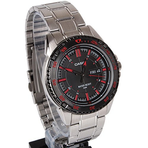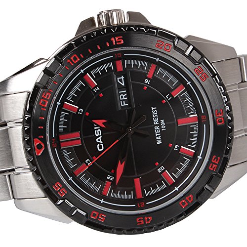 Brand, Seller, or Collection Name:Casio Model number:MTD-1078D-1A1VDF (A913) Part Number:MTD-1078D-1A1 Item Shape:ROUND Dial window material type:Mineral Display Type:Analog and digital Case material:Steel Case diameter:5.2 centimeters Case Thickness:10 millimeters Band Material:Stainless Steel Band width:20 millimeters Band Color:Silver Dial color:Black Calendar:Yes Special features:Light Item weight:10.56 Ounces Movement:Quartz Water resistant depth:100 Meters