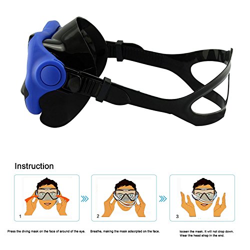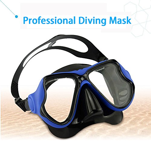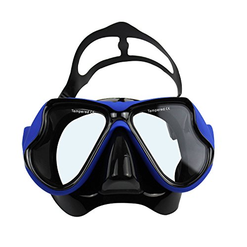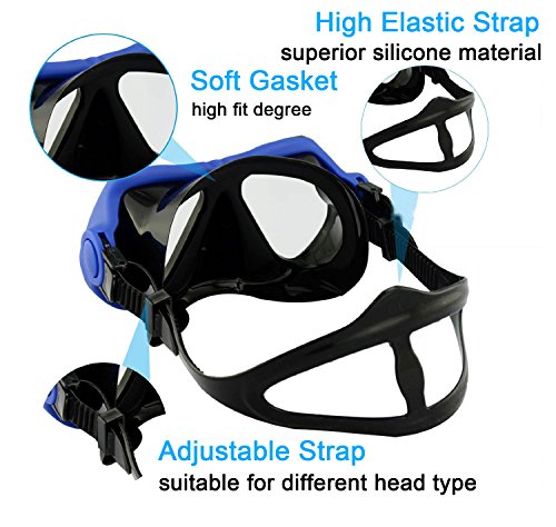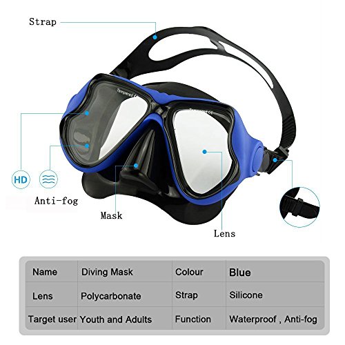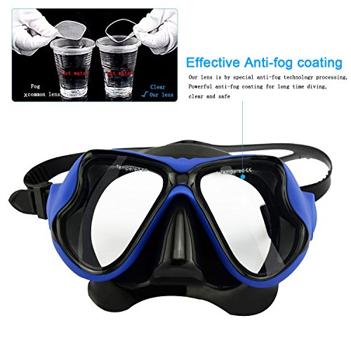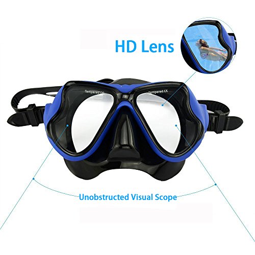 Globalstore Snorkeling Diving Freediving Scuba Mask with 100% Silicone Skirt Tempered Glass Lenses Anti-fog Scratch-resistant Panoramic Mask for Adult Youth (Blue)