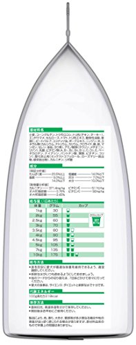原材料:小麦、コーングルテン、トウモロコシ、トリ肉(チキン、ターキー)、エンドウマメ、セルロース、トマト、トリ肉エキス、動物性油脂、亜麻仁、ビートパルプ、ココナッツ油、ポークエキス、ニンジン、米、ミネラル類(カルシウム、ナトリウム、カリウム、クロライド、銅、鉄、マンガン、セレン、亜鉛、ヨウ素)、アミノ酸類(タウリン、メチオニン、リジン)、乳酸、ビタミン類(A、B1、B2、B6、B12、C、D3、E、ベータカロテン、ナイアシン、パントテン酸、葉酸、ビオチン、コリン)、酸化防止剤(ミックストコフェロール、ローズマリー抽出物、緑茶抽出物)、カルニチン、リポ酸