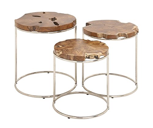 -. Title : Deco 79 59206 Wood Teak Nesting Tables (Set of 3), 24"/21"/19"
