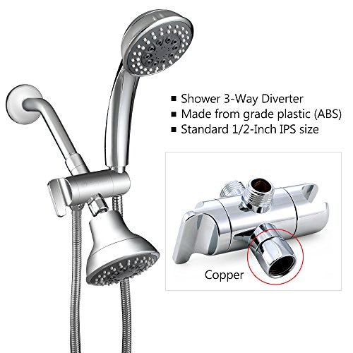 HOMEIDEAS Handheld Shower and Shower Head Shower Arm 3-Way Diverter Bathroom Universal Shower System Component Replacement Part,ABS Chrome Plated