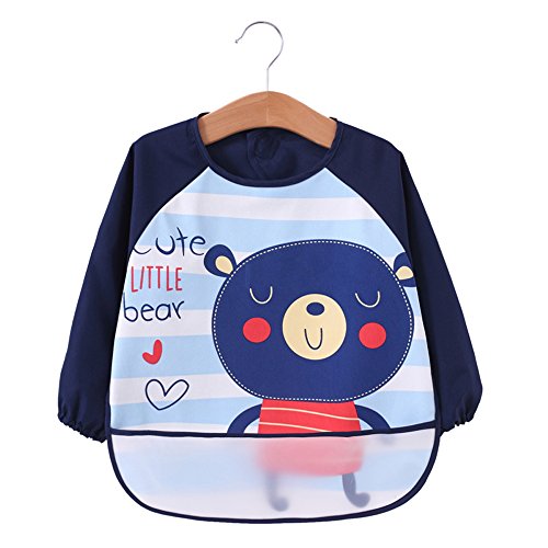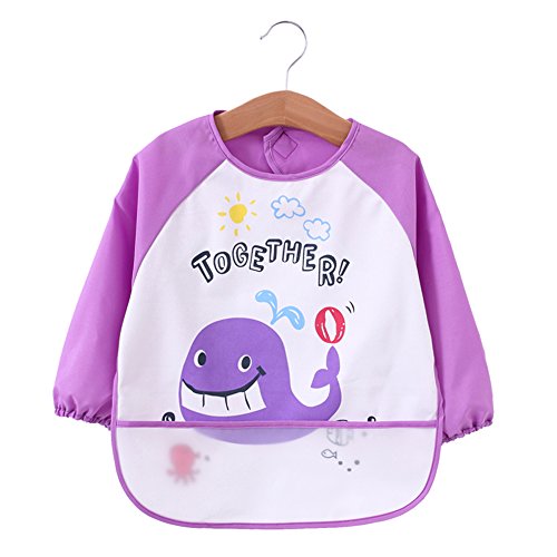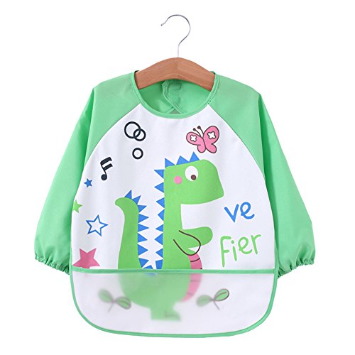 -. Binding : Apparel -. Brand : Momloves -. Department : unisex-baby -. Feature : Super waterproof, easy wipe and lightweight PUL fabric, Lead, PVC, BPA, Phthalates, and Vinyl free. / Measures 14.5" across chest, Cloth length about 15.7" , sleeve length about 14.5" , and suit for 6-24 Months. Light weight and easy to clean up, machine washable, hang dry. / With sleeves for full clothing coverage and can double as an art smock. Great for kids who love paint and draw and can protect them from staining clothes. / Neck&Cuff Closure - adjustable velcro closure enables your Baby feels comfortable and fits in long term. / Easy to wipe off, Perfect for feeding, eating and messy play with funny designs and patterns. Liquid-proof and soft, breathable material. -. IsAdultProduct : 0 -. ProductGroup : Apparel -. ProductTypeName : ACCESSORY -. Size : Small -. Title : Momloves Baby Waterproof Sleeved Bib, Set of 2, FREE BABY TOWELS, 6 Months-3 Years