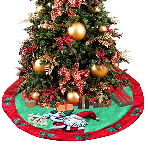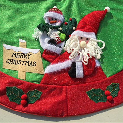 D-FantiX Santa Snowman Burlap Christmas Tree Skirt 48 inches Large Xmas Tree Skirt Christmas Decorations ( Red and Green )