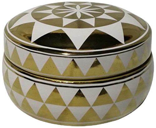 Benzara Lustrous Ceramic Covered Triangle Design Jar Decorative, White/Gold