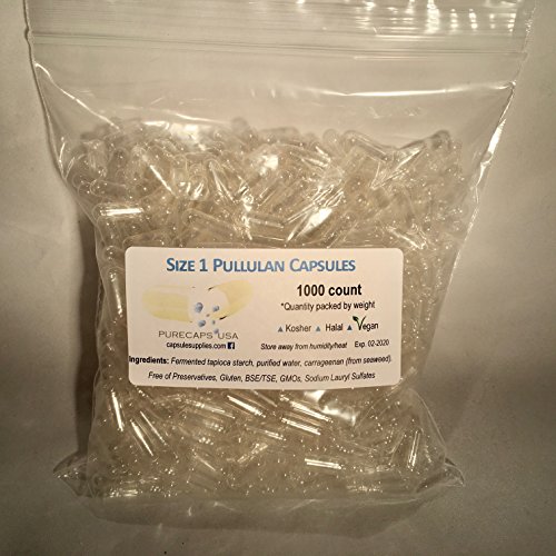 -. Title : PurecapsUSA Empty Vegetarian Pullulan Capsules – Size “1” – 1000 Fillable Caps – Kosher/Halal – Hypoallergenic – Vegan - GMO Free