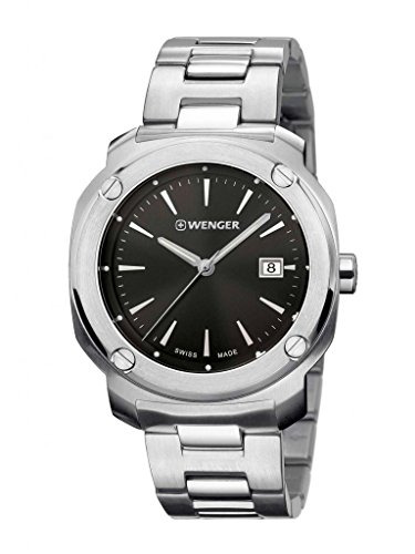 -. Title : Wenger 01.1141.109 Men's Edge Index Stainless Steel Case and Bracelet Band Black Dial Silver Watch