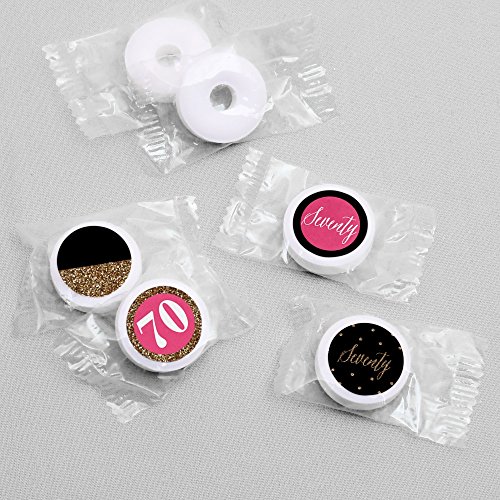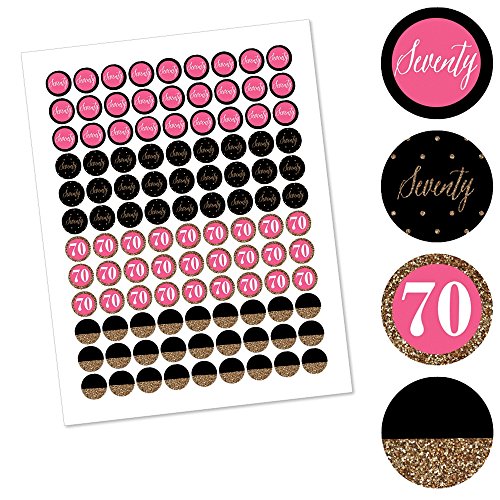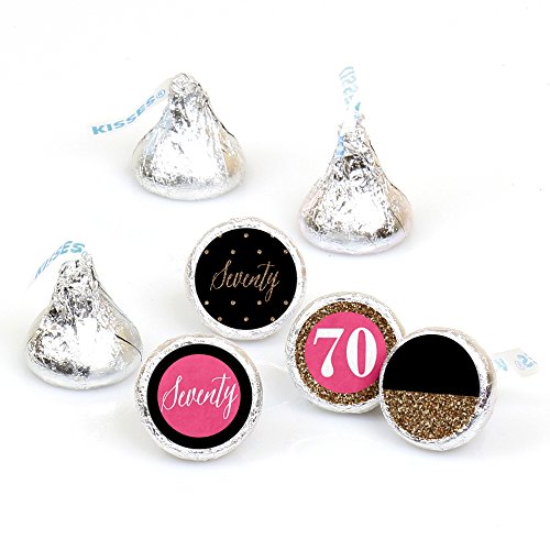 Chic 70th Birthday - Pink, Black and Gold - Round Candy Sticker Favors - Labels Fit Hershey’s Kisses (1 sheet of 108)