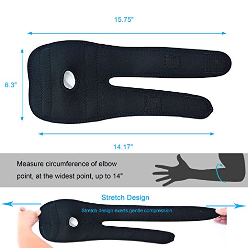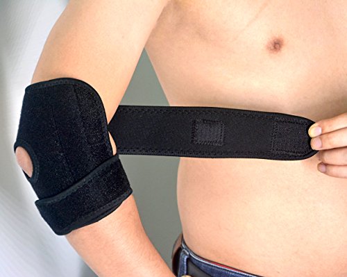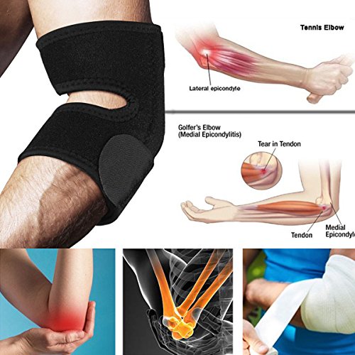 -. Feature : What's Get: Packing includes 1 single adjustable elbow support brace for your right or left arm, which gives you a arm protection, One Size Fits Most / Elbow Support Brace: This elbow support will make your life easier, compressing elbow joint pain, and giving you a greater ease of comfort, can be used to prevent the injury of elbow joint and tendon, provide warmth, relieve pain, suitable for recovery of elbow injury and arthritis / Adjustable Strength Straps: Ergonomic design, the adjustable straps prevents discomfort and constant readjusting easily, so you can adjust how tight it is, provides you a strong support as you required / Breathable Neoprene: Durable elastic and moisture breathable neoprene materials ensures that you stays comfortably cool and dry while wearing it, knitted joint support stabilizes the elbow through controlled compression / Deserved Elbow Sleeve: The elbow support built-in 2 stainless sP.R.Ings inside to enhance the stabilization and safety, with optimal flexibility and ultra-durability provides extended coverage for additional support, can be worn all day comfortably, allowing you to perform at your peak in any situation