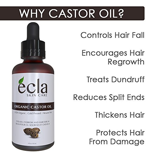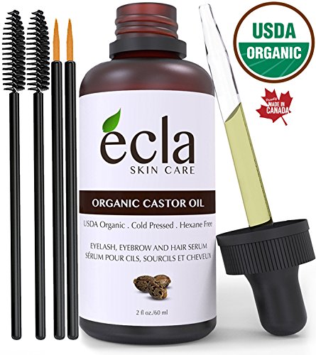 Organic Castor Oil for Hair Growth, Eyelashes, Eyebrows and Beard, 100% Pure Cold Pressed, Virgin, USDA Certified ( 2 Oz ). Best Moisturizer for Skin Care, Natural Treatment for scalp and Bald spot
