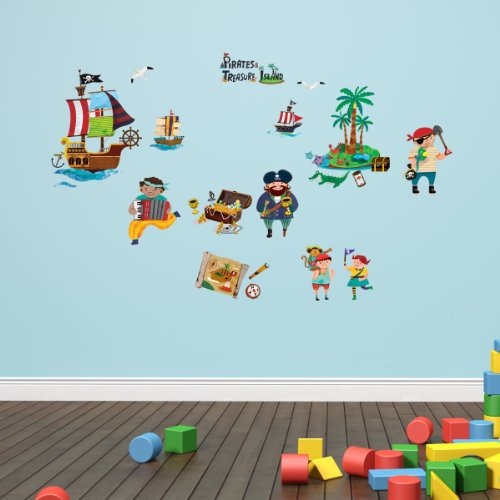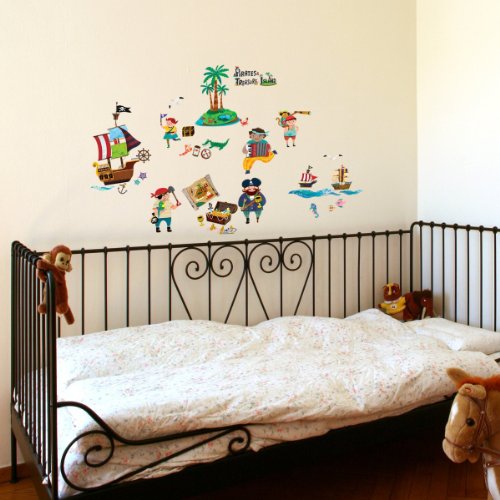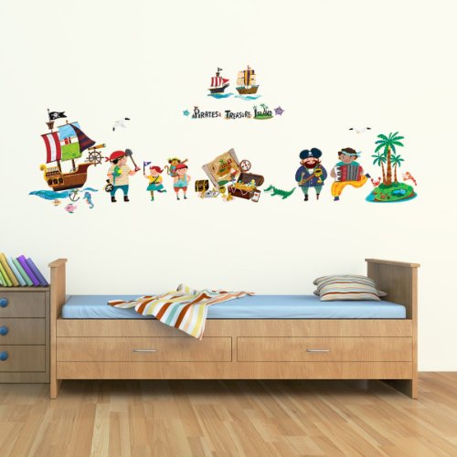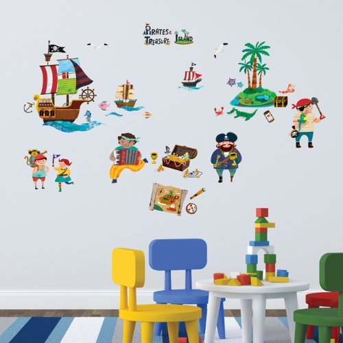 -. Title : Decowall DW-1310 Pirates & Treasure Island Peel and Stick Nursery Kids Wall Decals Stickers