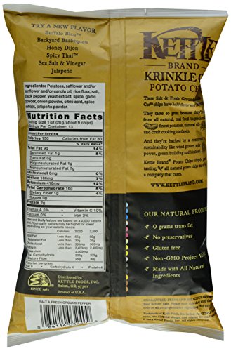 Kettle Brand Krinkle Cut Potato Chips, Salt and Fresh Ground Pepper, 13-Ounce Bag