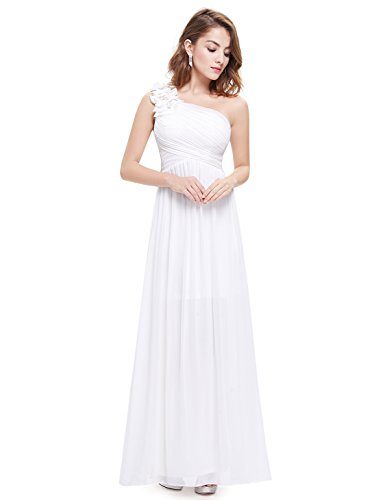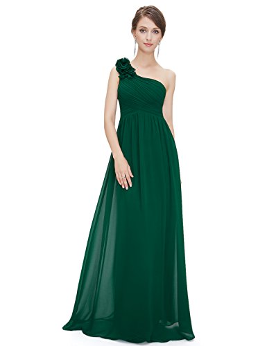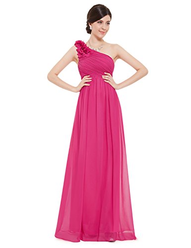 One shoulder long party dress. Padded enough for "no bra" option. Stylish hand-made flower decorates the single shoulder. Unique ruched bust creates an elegant silhouette. Simple and fashion design. Concealed zipper up the back. Lining, no stretch