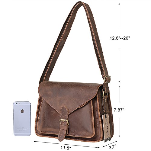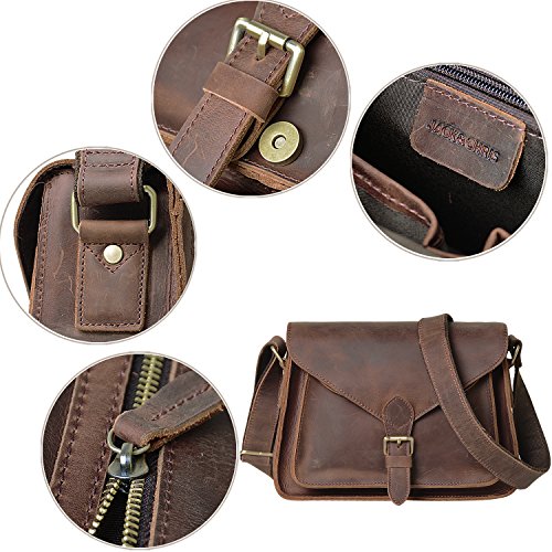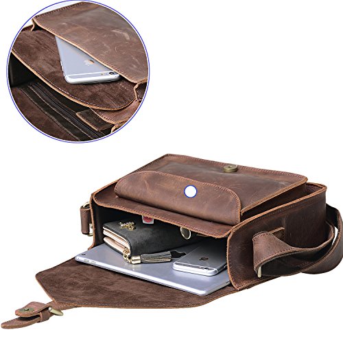 CAPACITY:leather crossbody bag can hold books, ipad, phone and other things you daily use.With 1 main pocket and interior zipper pocket.2 slip slots and 2 pen slots.There is also a magnetic closure pocket under the flap in size 22*12cm.With 1 back side external zipper pocket.